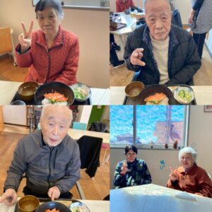 施設では普段なかなか食べれない、海鮮丼を皆さん食べられていました😋