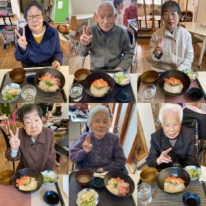 施設では普段なかなか食べれない、海鮮丼を皆さん食べられていました😋