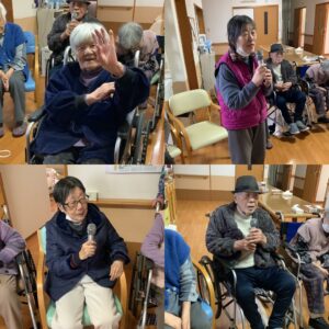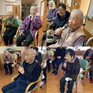 寒い日が続いていますので、施設内レクリエーションに毎日取り組まれています🎤💪