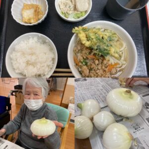 今日は、入浴後に新玉ねぎを皆さんに剥いて頂き、ランチはうどんメニューでした⭐️