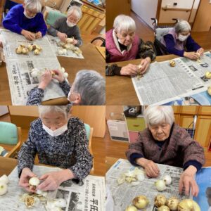 今日は、入浴後に新玉ねぎを皆さんに剥いて頂き、ランチはうどんメニューでした⭐️