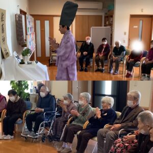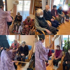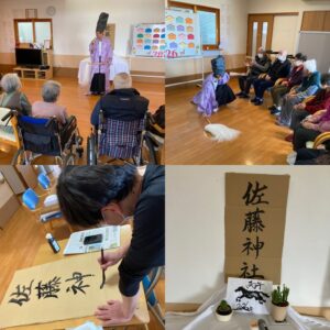 1月です⛩ 毎年行っている正月行事も終わり、本日はカラオケで盛り上がっています🎤 先日は双六を行いました🎲 今年も佐藤神主が利用者様の健康をお祈りされました🤣✨ 長崎県 雲仙市 吾妻町 グループホームあすなろ